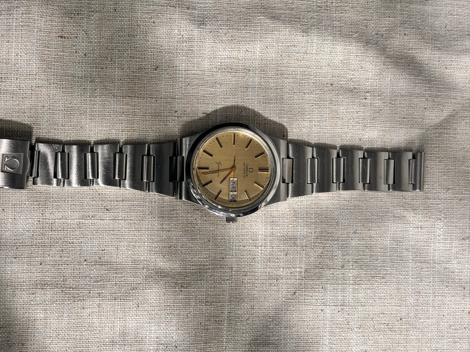 Découvrez cette Omega Genève Day-Date au design emblématique attribué à Gérald Genta, connue pour ses lignes tendues, son bracelet intégré et son esthétique purement seventies. Une pièce recherchée, rare dans cette configuration, idéale pour les collectionneurs en quête d’une montre vintage au style affirmé et au confort exceptionnel.